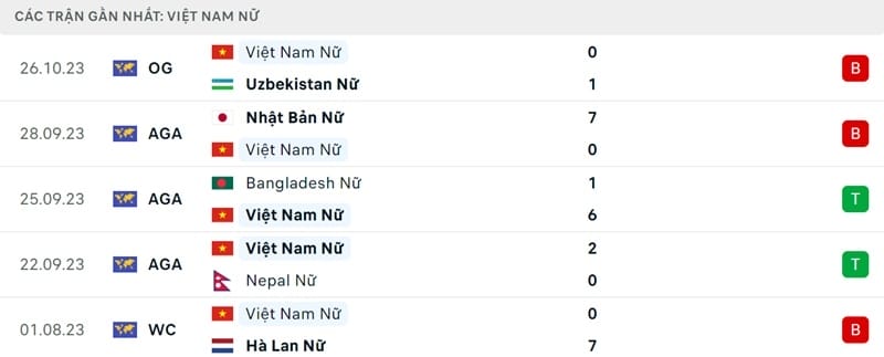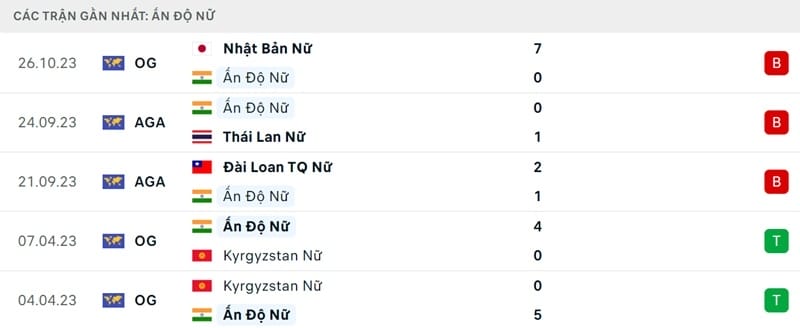 Phong độ gần đây nữ Ấn Độ vs nữ Việt Nam: