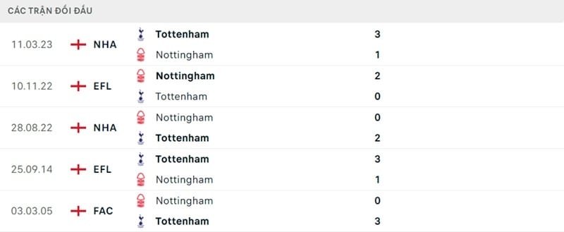 Xét thành tích đối đầu giữa 2 CLB, Tottenham vượt trội Forest. 5 lần đụng độ gần nhất, Gà trống thắng tận 4 và thua 1. Sự chênh lệch đẳng cấp giữa Spurs và đội chủ nhà không phải không xuất hiện.