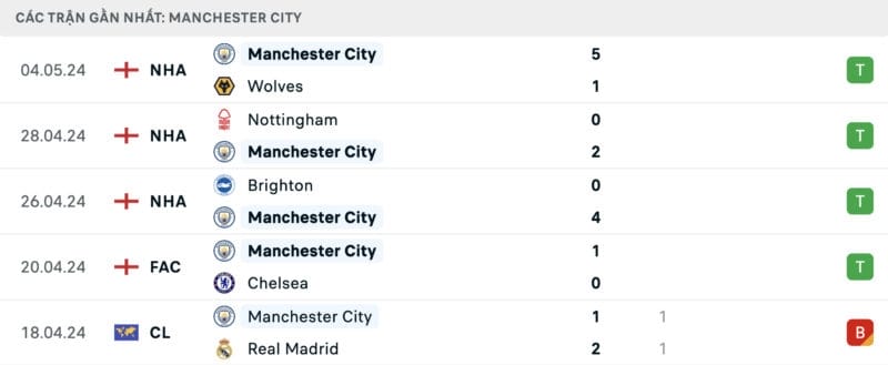 Man City đang băng băng tiến về đích trong chặng đua nước rút tại Ngoại hạng Anh mùa này. Giống như những mùa giải trước đó, đây là thời điểm mà The Cityzens thể hiện phong độ cao nhất.