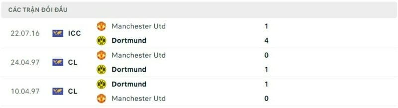 • Thành tích đối đầu Man United vs Dortmund