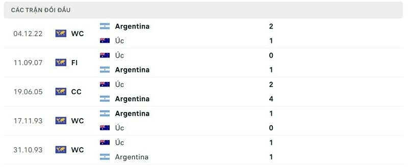 Thành tích đối đầu Argentina vs Australia: