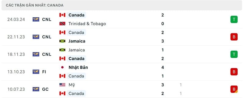 Xét về mặt phong độ, ĐT Canada đang không có màn trình diễn tốt. Trong 5 trận gần nhất trên mọi đấu trường, đoàn quân của HLV Jesse Marsch giành được 2 chiến thắng và nhận 3 thất bại.