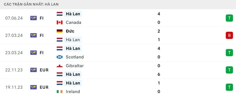 Phong độ thi đấu Hà Lan vs Iceland