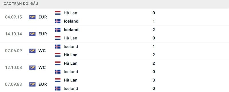 Thành tích đối đầu Hà Lan vs Iceland