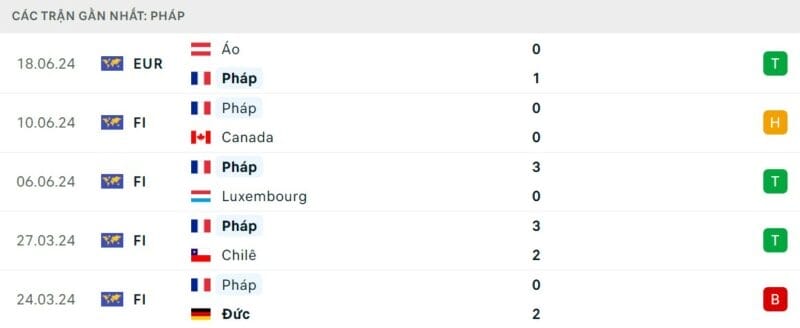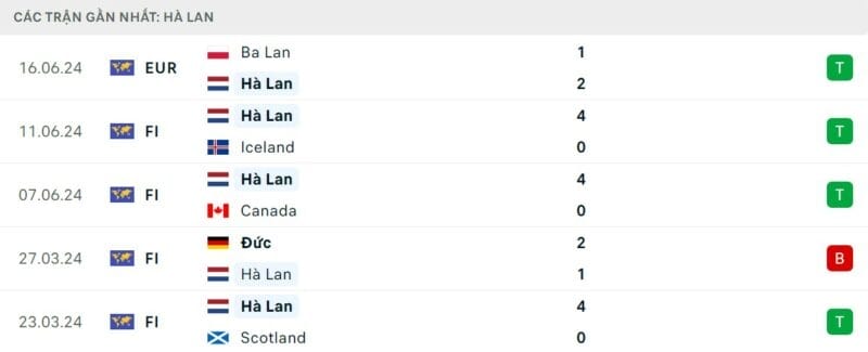 Phong độ Hà Lan vs Pháp