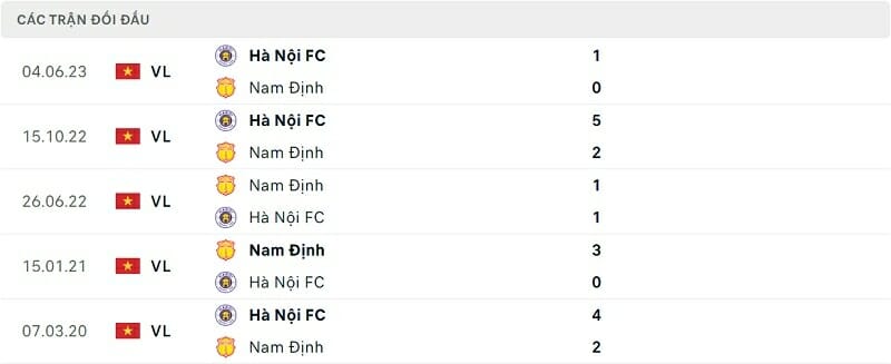 Thành tích đối đầu Hà Nội vs Nam Định