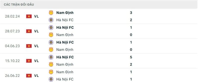 Thành tích đối đầu Hà Nội vs Nam Định