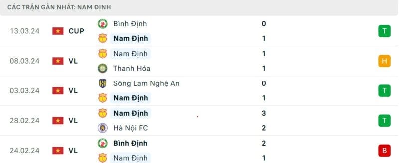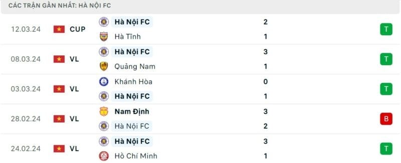 Phong độ gần đây Hà Nội vs Nam Định
