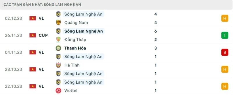 Phong độ Hà Nội vs SLNA