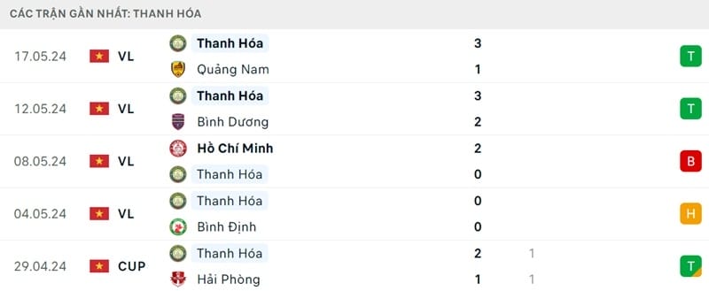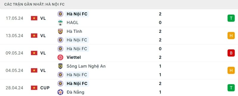 Phong độ Hà Nội vs Thanh Hóa