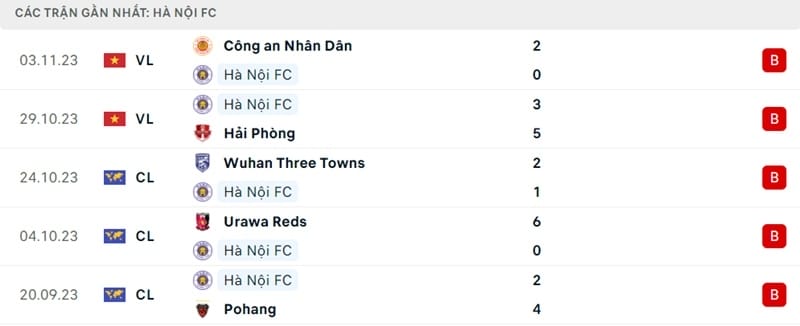 Phong độ Hà Nội vs Wuhan Three Towns: