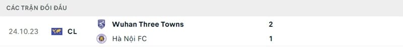 Thành tích đối đầu Hà Nội vs Wuhan Three Towns: