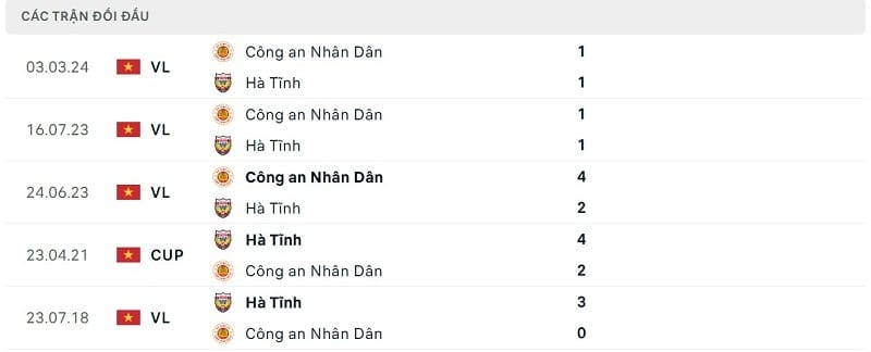 Thành tích đối đầu Hà Tĩnh vs CAHN