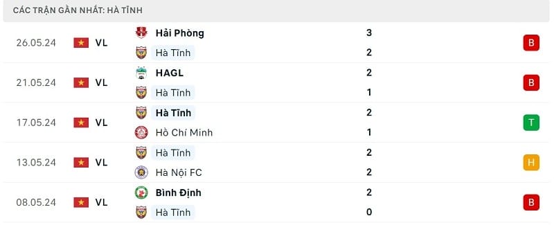 Phong độ của Hà Tĩnh trong 5 trận gần nhất phản ánh đúng vị trí mà họ đang đứng trên bảng xếp hạng. Đoàn quân của HLV Nguyễn Thành Công chỉ giành được 1 chiến thắng, 1 trận hòa và nhận đến 3 thất bại. Nếu không nhanh chóng cải thiện phong độ, tấm vé xuống hạng sẽ ngày càng gần Hà Tĩnh.