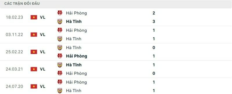 Thành tích đối đầu Hà Tĩnh vs Hải Phòng:
