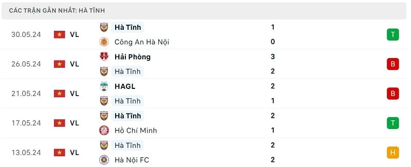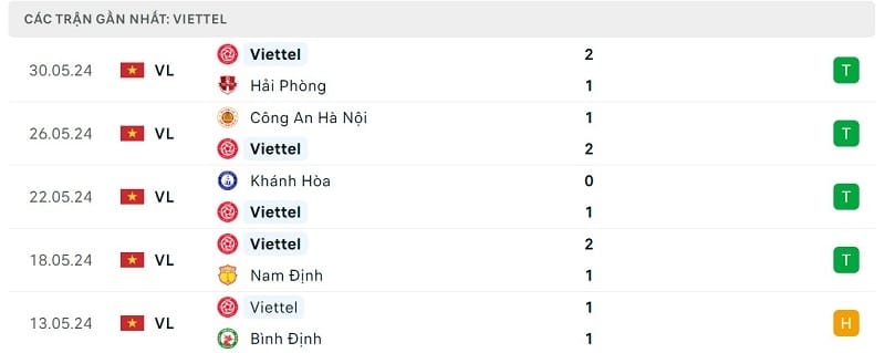 Phong độ gần đây Hà Tĩnh vs Viettel