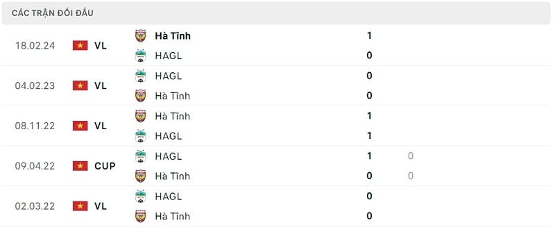 Thành tích đối đầu HAGL vs Hà Tĩnh