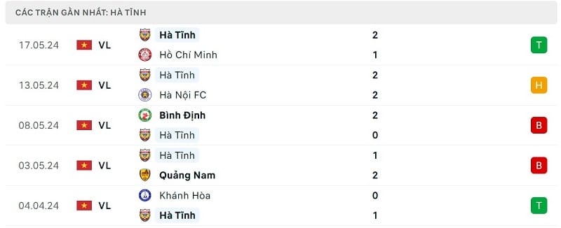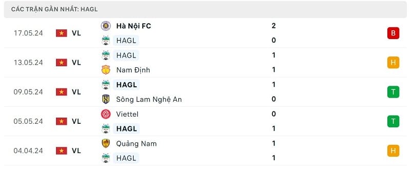 Phong độ HAGL vs Hà Tĩnh