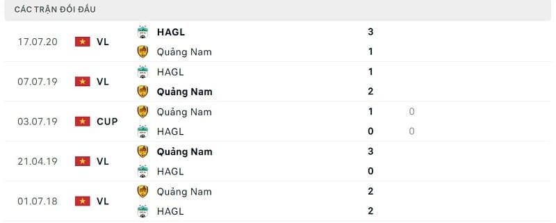 Thành tích đối đầu HAGL vs Quảng Nam: