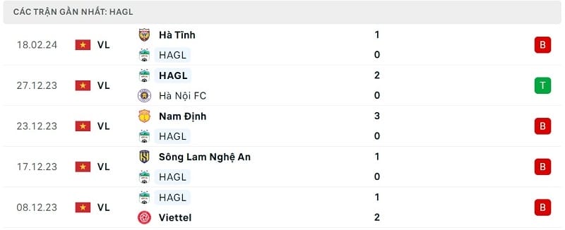 Ở trận đấu gần nhất gặp Hà Tĩnh, HAGL bất lực trong việc ghi bàn và phải nhận thất bại với tỷ số 0-1. Kết quả này khiến đoàn quân của HLV Vũ Tiến Thành tiếp tục chìm sâu ở đáy bảng xếp hạng V-League 2023/24. Đội chủ sân Pleiku hiện chỉ có 5 điểm với thành tích 1 chiến thắng, 2 trận hòa và nhận đến 6 thất bại.