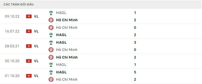 Thành tích đối đầu HAGL vs TP HCM