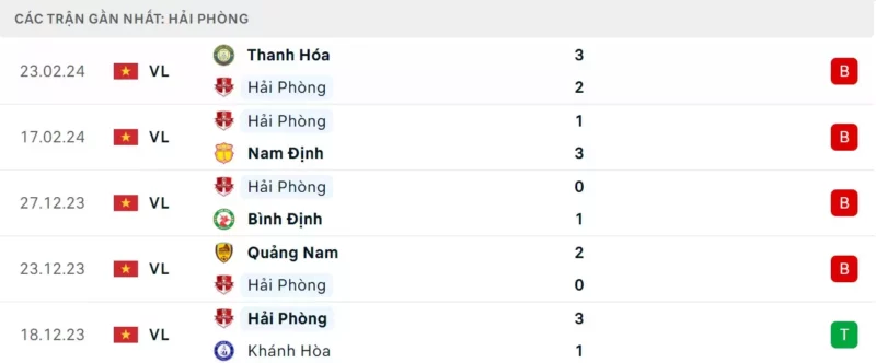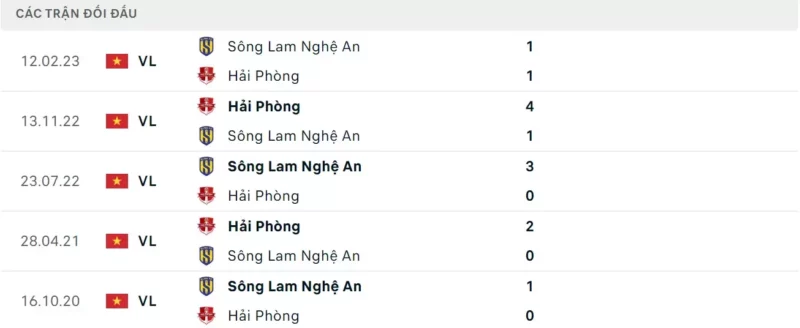 Thành tích đối đầu Hải Phòng vs SLNA: