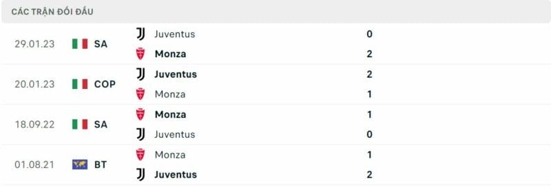 Trong khi đó, Lão phu nhân thắng 4/5 cuộc đấu gần đây nhất. Dù vậy họ có lý do để phải cẩn thận với sự lì lợm của Monza, nhất là khi đối thủ được chơi trên sân nhà. Thành tích đối đầu của đôi bên cũng là khá cân bằng với 2 chiến thắng chia đều cho mỗi đội ở 4 trận gần đây nhất. 3 điểm là điều Lão phu nhân chắc chắn hướng đến nhưng không dễ để họ đạt được.