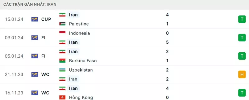 Phong độ gần đây Hồng Kông vs Iran: