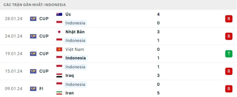 Phong độ của Indonesia là dấu hỏi lớn, khi họ đã thua tới 7 trong 9 trận đấu gần đây. Ở trận đấu chính thức gần nhất tại Asian Cup trước Australia, đoàn quân của ông Shin Tae Yong đã thảm bại với tỉ số 0-4. Để chuẩn bị cho trận đại chiến với Việt Nam, đội tuyển xứ Vạn đảo nhập tịch ồ ạt. Họ tự tin sẽ đánh bại Rồng vàng tại sân nhà Bung Karno.