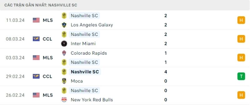 Trong cuộc chạy đà cho trận tái đấu với Inter Miami, Nashville cũng gây thất vọng ngay tại sân nhà trước LA Galaxy. Đoàn quân của ông Gary Smith dẫn trước 2 bàn nhờ công của Bunbury và Yearwood. Nhưng phải chịu trận hòa 2-2, do để lọt lưới 2 lần ở những phút cuối trận.