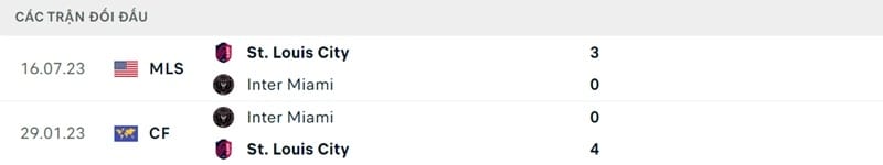 Thành tích đối đầu Inter Miami vs St. Louis