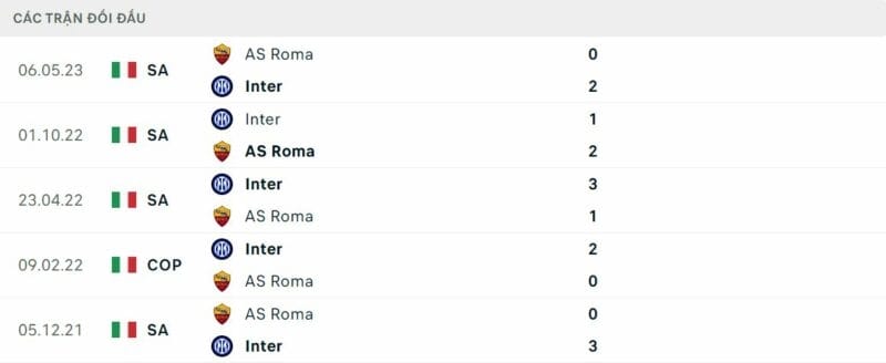Inter có sự ủng hộ của thành tích đối đầu gần đây trước AS Roma. Họ chỉ nếm mùi thất bại ở 1 trong 12 trận đấu đụng độ gần nhất trước đối thủ, còn lại là 5 thắng và 6 hòa. AS Roma là đội mà Nerazzurri đã đánh bại nhiều hơn bất kỳ tập thể nào khác (76 lần) trong lịch sử Serie A.