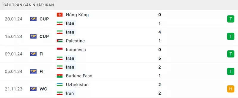 Phong độ Iran vs UAE: