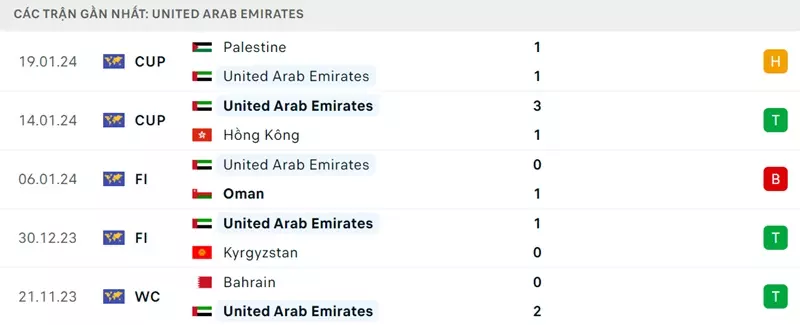 Thành tích đối đầu không ủng hộ UAE