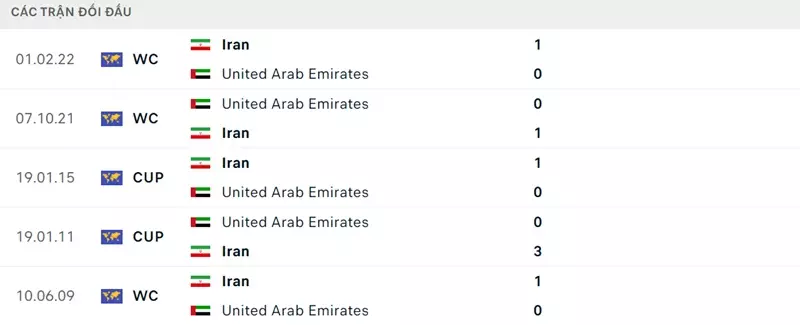 Thành tích đối đầu Iran vs UAE: