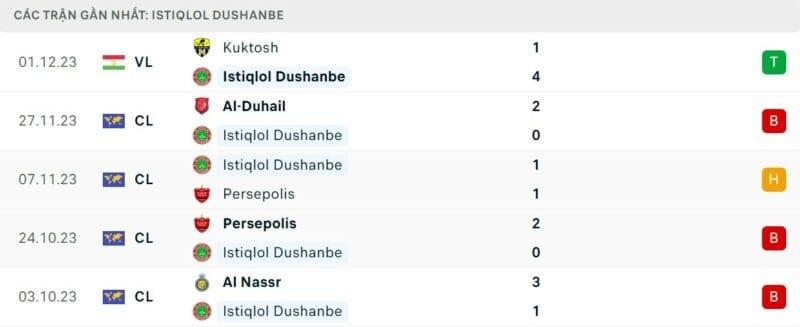 Phong độ Istiklol vs Al Nassr