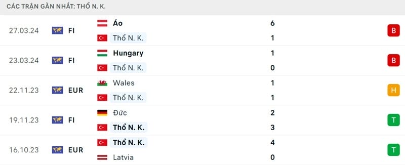 Thổ Nhĩ Kỳ sẽ chào sân EURO 2024 tại Dortmund, nơi họ gặp Georgia ở bảng B. Hai đối thủ còn lại của Thổ Nhĩ Kỳ bao gồm Bồ Đào Nha và Cộng hòa Séc. Trước đó, thầy trò HLV Vincenzo Montella nhận 2 trận thua giao hữu hồi tháng 3. Đội bóng của Montella bị Hungary đánh bại, trước khi chịu thua muối mặt 1-6 bởi Áo ở Vienna.
