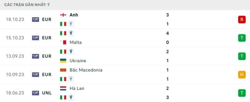 Thành tích đối đầu Italy vs Bắc Macedonia
