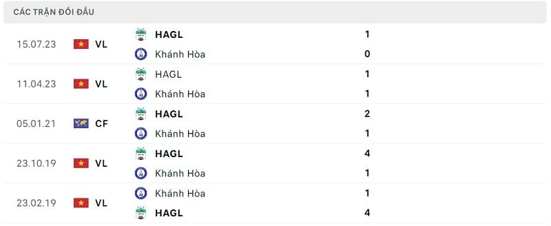 Thành tích đối đầu Khánh Hòa vs HAGL: