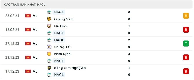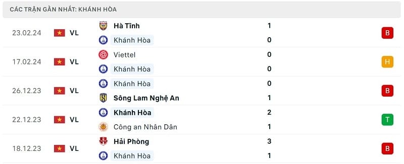 Phong độ Khánh Hòa vs HAGL: