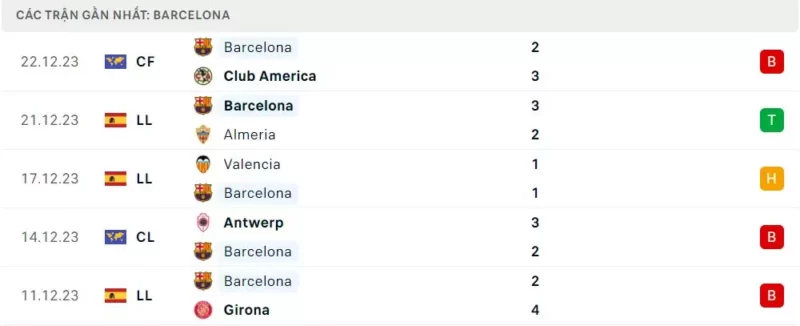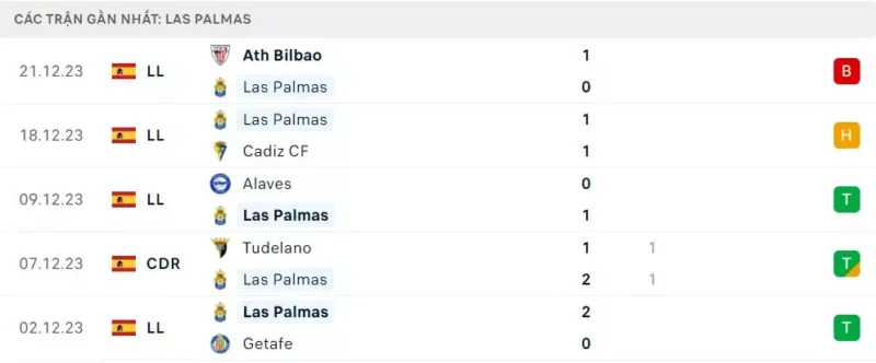 Phong độ Las Palmas vs Barca