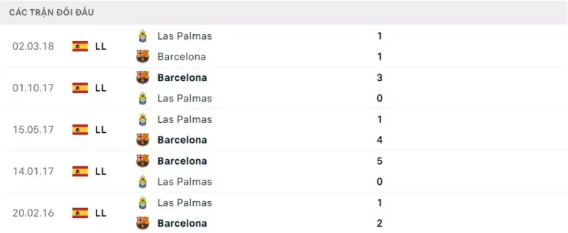 Thành tích đối đầu Las Palmas vs Barca