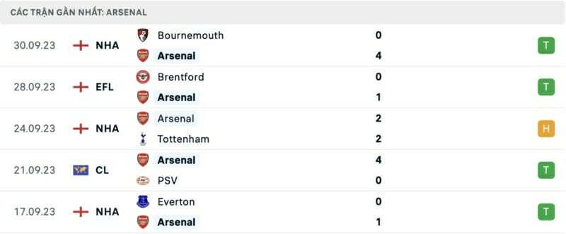 Phong độ Lens vs Arsenal