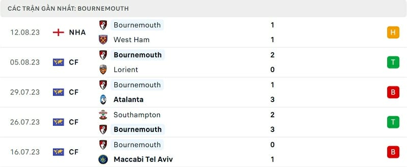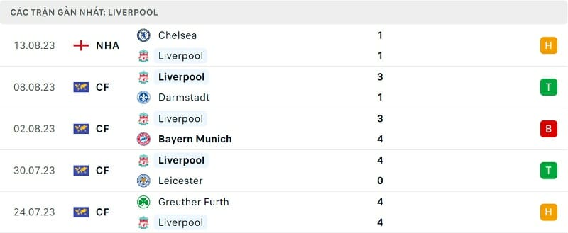 Phong độ Liverpool vs Bournemouth