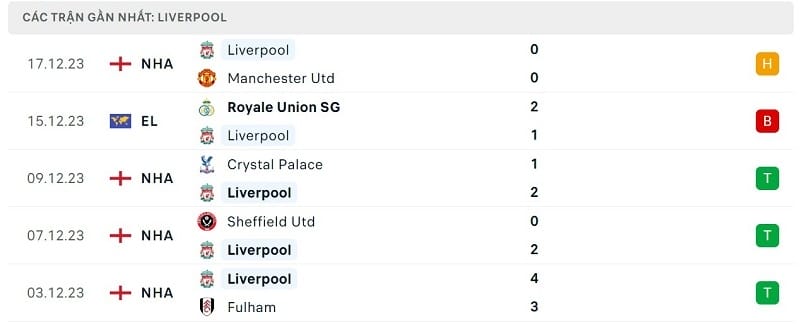Ở trận đấu gần nhất, Liverpool tiếp đón Man United trên sân nhà Anfield với quyết tâm lớn, qua đó tiếp tục cạnh tranh ngôi đầu Ngoại hạng Anh với Arsenal. Chung cuộc, đoàn quân của HLV Jurgen Klopp vẫn có được 1 điểm nhưng đó khó có thể coi là kết quả thành công với Liverpool.