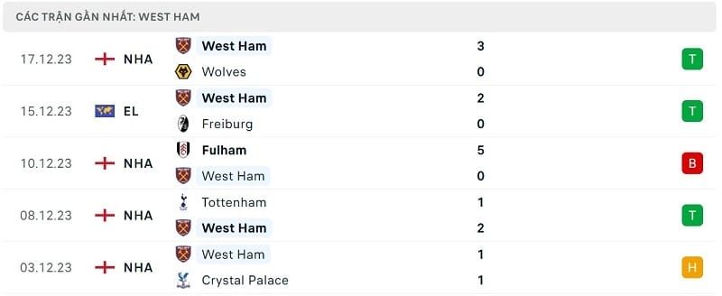 Trước khi Ngoại hạng Anh 2023/24 khởi tranh, West Ham không được đánh giá quá cao bởi họ từng ở nhóm đua trụ hạng mùa giải trước. Tuy nhiên tính đến thời điểm hiện tại, đoàn quân của HLV David Moyes đang có màn thể hiện khá tốt khi đứng thứ 8 trên bảng xếp hạng.