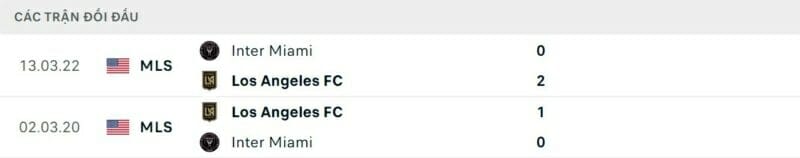 Thành tích đối đầu Los Angeles FC vs Inter Miami: