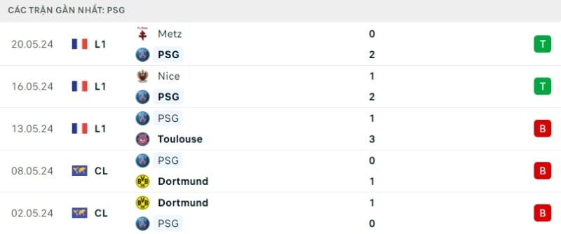 Phong độ thi đấu Lyon vs PSG