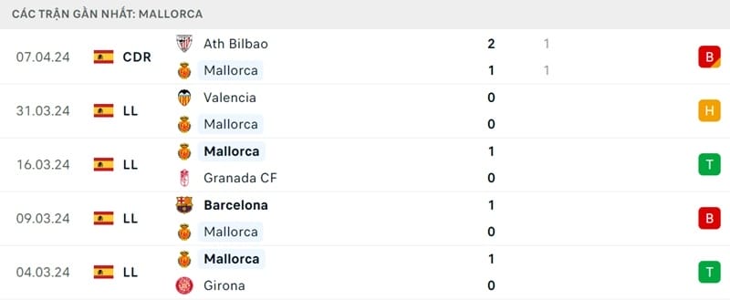 Điều tích cực là thầy trò HLV Javier Aguirre chỉ thua 1 trong 5 trận gần nhất ở giải đấu hàng đầu Tây Ban Nha. Đó là thất bại 0-1 trước Barcelona vào ngày 8 tháng 3. Mallorca giành được bốn điểm từ hai trận đấu gần đây nhất của họ với Granada và Valencia. Ngày mai, đội chủ nhà sẽ cố gắng tận dụng việc Real Madrid không tập trung cho trận đấu vào cuối tuần để kỳ vọng vào kết quả khả quan.