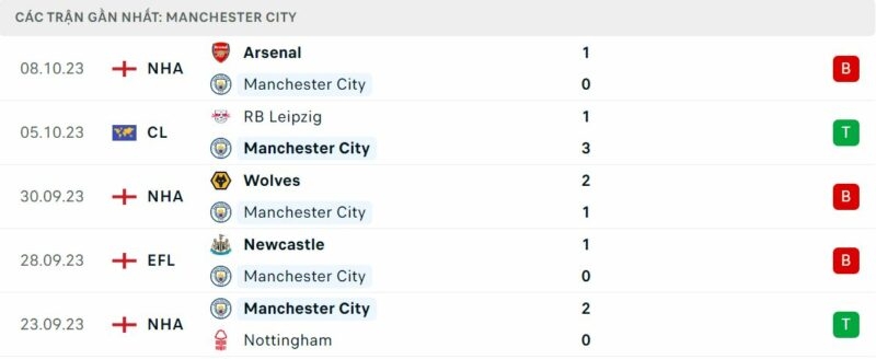 Phong độ Man City vs Brighton